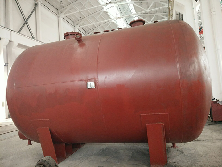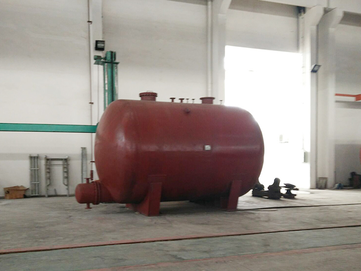 蒸餾釜,涉及一種化工生產中蒸餾所使用的釜。主要是為解決現有的蒸餾釜在生產過程中當物料中含有固狀物及高沸點物時需間斷檢修清理的問題而設計的。它包括蒸餾釜殼體,在蒸餾釜殼體上方是上封頭,上封頭上有氣體出口,上封頭下方有除沫器,除沫器下方為貯料室,貯料室上部有進料口,室內設立式蒸發器,蒸餾釜下部為固狀物及高沸點物沉降室,在沉降室內設攪拌器,攪拌器軸通過軸封與外部電機相連,蒸餾釜底部設固狀物及高沸點物排出口。優點是可隨時排出固狀物及高沸點物,無須間斷檢修清理,保證生產連續進行。